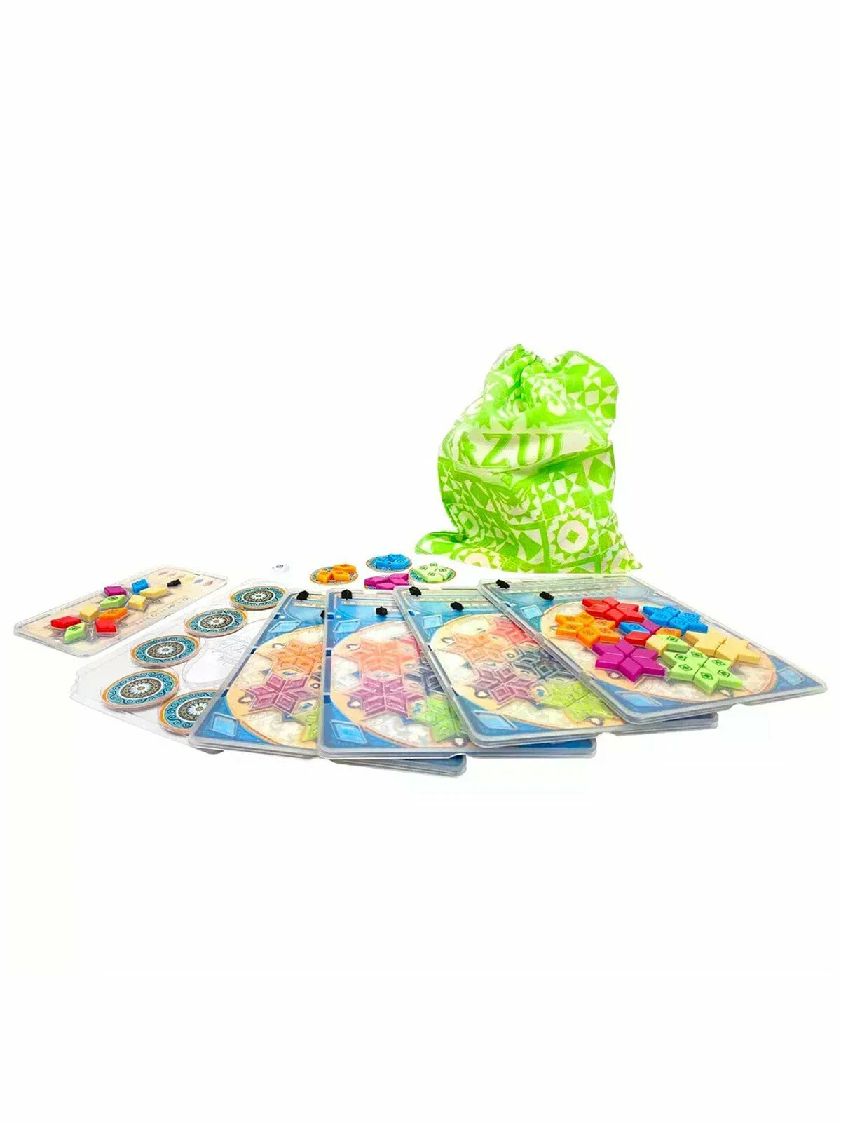 Мини‑версия сохраняет все эти элементы, но адаптирует компоненты под формат «игры в пути». Плитки выполнены из прочной смолы, а пластиковые накладки на планшеты надёжно удерживают их в ячейках, не давая узорам расползаться даже при случайных толчках стола. Это особенно удобно при игре в дороге, на пикнике или в ограниченном пространстве, где обычные картонные планшеты могли бы легко сдвинуться.