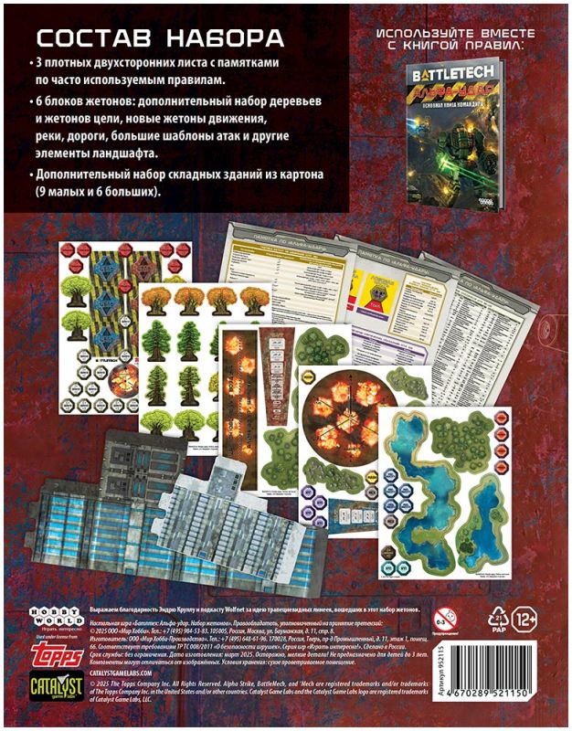 Сам по себе «Набор жетонов» не добавляет новых сценариев или сюжетных элементов — он создан именно как функциональное дополнение. Его основная задача — дать командирам все необходимые обозначения и ландшафт для применения расширенных правил, описанных в «Основной книге командира». Если вы уже освоили базовый Alpha Strike и хотите масштабировать сражения, варьировать типы местности и шире использовать продвинутые опции движения, укрытий, линий видимости и целей, этот комплект станет логичным следующим шагом.