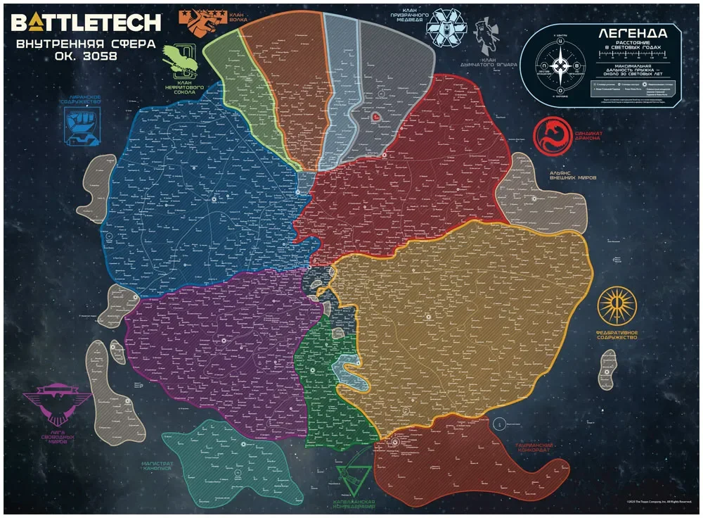 Двухсторонняя цветная карта‑постер Внутренней Сферы.