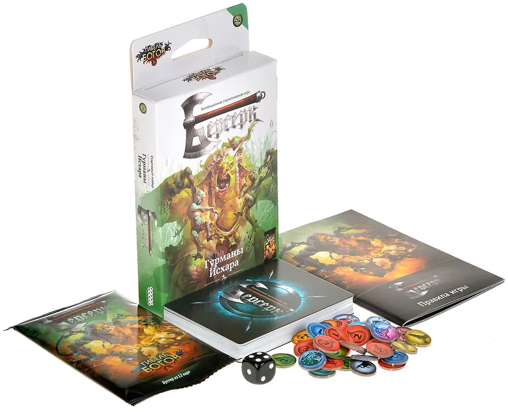 «Гурманы Исхара» рассчитаны на дуэльные партии: для полноценной игры нужен второй стартовый набор (например, «Изгнанники Алламора» или «Жнецы Хаосфортума») либо уже собранная колода соперника. Стандартные параметры выпуска «Гибель богов» сохраняются: играют 2 человека, рекомендованный возраст — от 12 лет, а средняя партия занимает примерно 40–60 минут в зависимости от опыта и состава колод. Набор относится к линейке «Начинающим игрокам», поэтому подойдёт и тем, кто только знакомится с «Берсерком», и тем, кто возвращается в игру после перерыва.