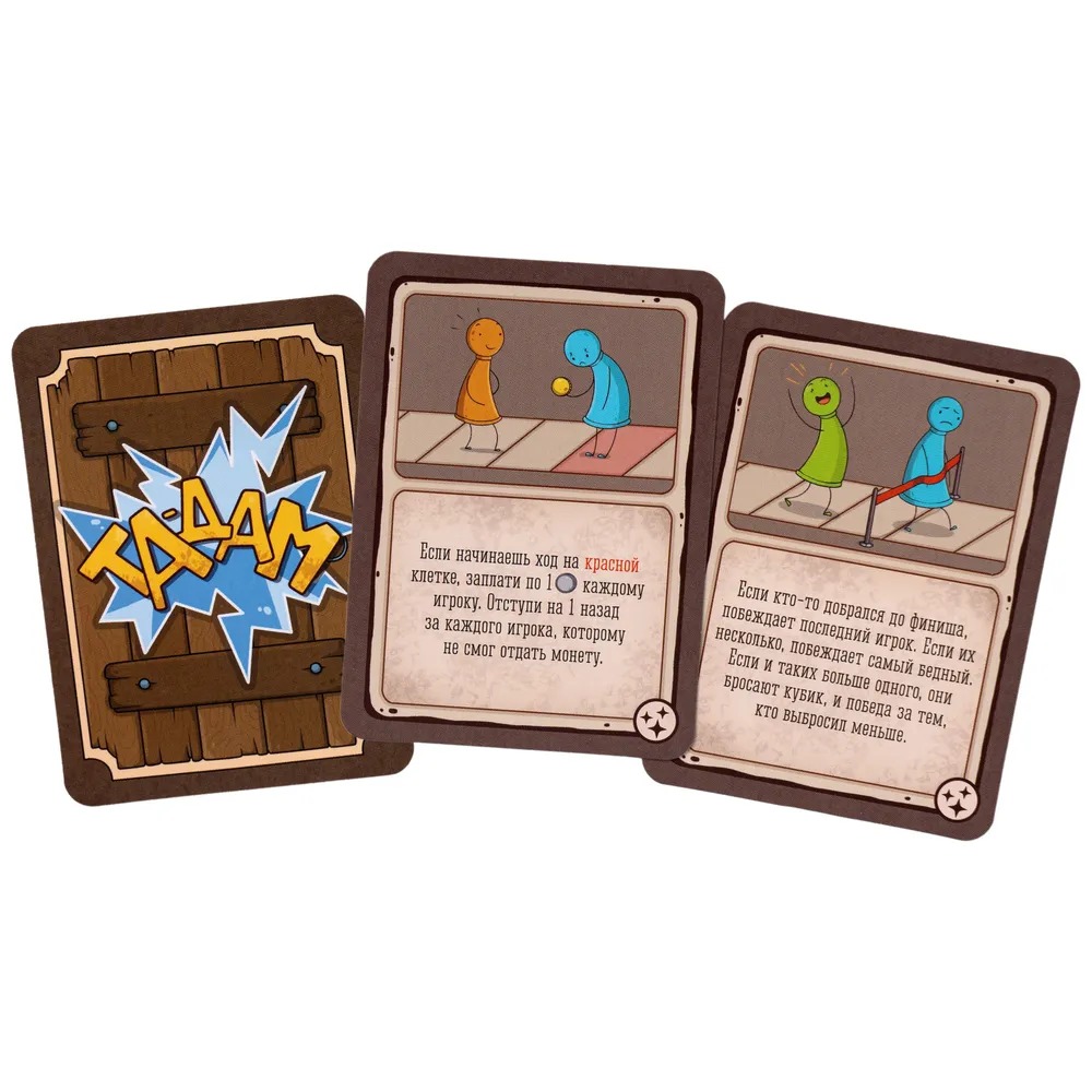 Конкуренция нарастает, страсти накаляются.. Но какая-нибудь заковыристая карта «Та-Дам» легко охладит пыл участников, вводя временные правила, будто сбежавшие из какой-нибудь шутливой игры для вечеринок. На поле может быть сразу три карточки с разными эффектами, и никогда заранее не знаешь, чего от них ждать.