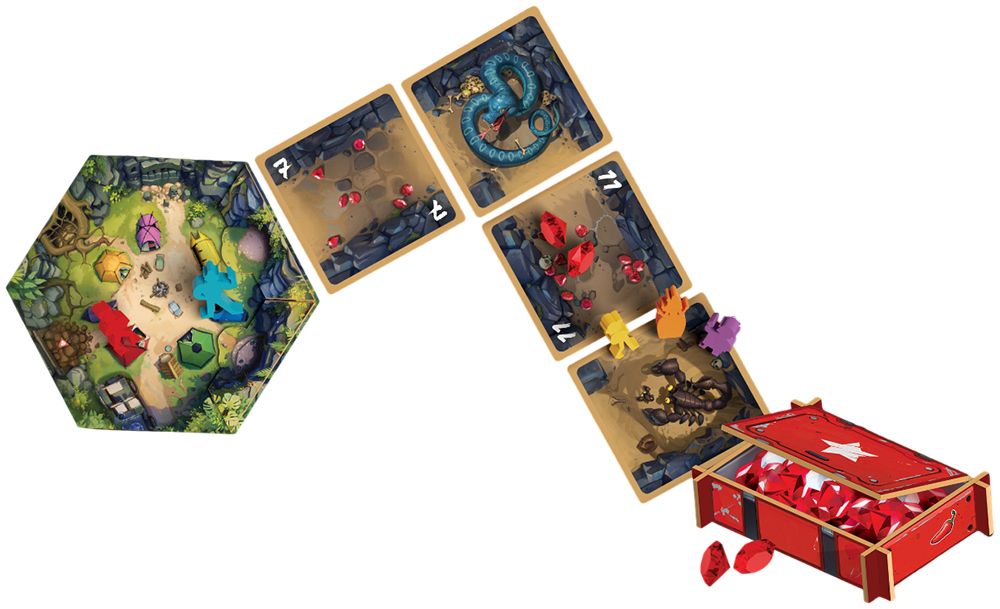 Партия состоит из пяти экспедиций в пещеру, и в каждой вы будете вместе открывать карты исследования одна за другой. На них лежат блестящие кристаллы — добычу делят поровну между всеми, кто ещё не испугался и продолжает путь. Остатки кристаллов остаются на карте и могут достаться тем смельчакам, кто решит вовремя развернуться и вернуться в лагерь, пока пещера окончательно не обрушилась.