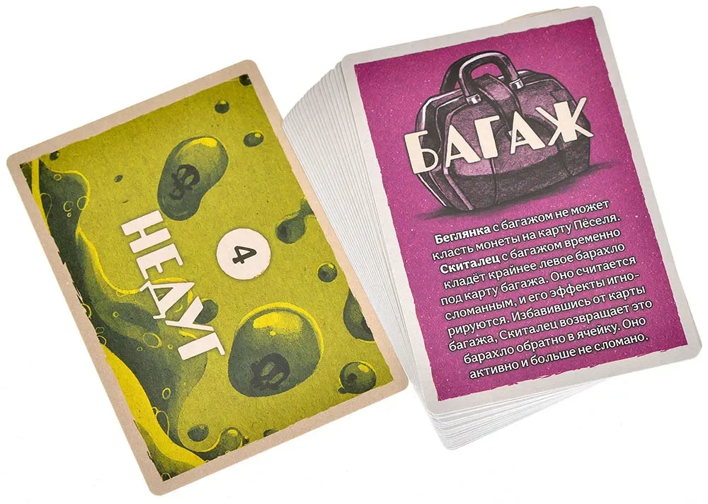 Отдельный штрих — набор обугленных костей и дополнительных жетонов объектов, монет и маркеров хода. Они подчёркивают мрачный антураж поездки по ржавым рельсам прошлого и помогают удобнее отслеживать происходящее на столе. Обновлённые ритуалы и карты каданса меняют темп партий: в некоторых сценариях вы будете чувствовать, как поезд ускоряется к катастрофе, в других — как судьба даёт передышку перед следующей бурей.