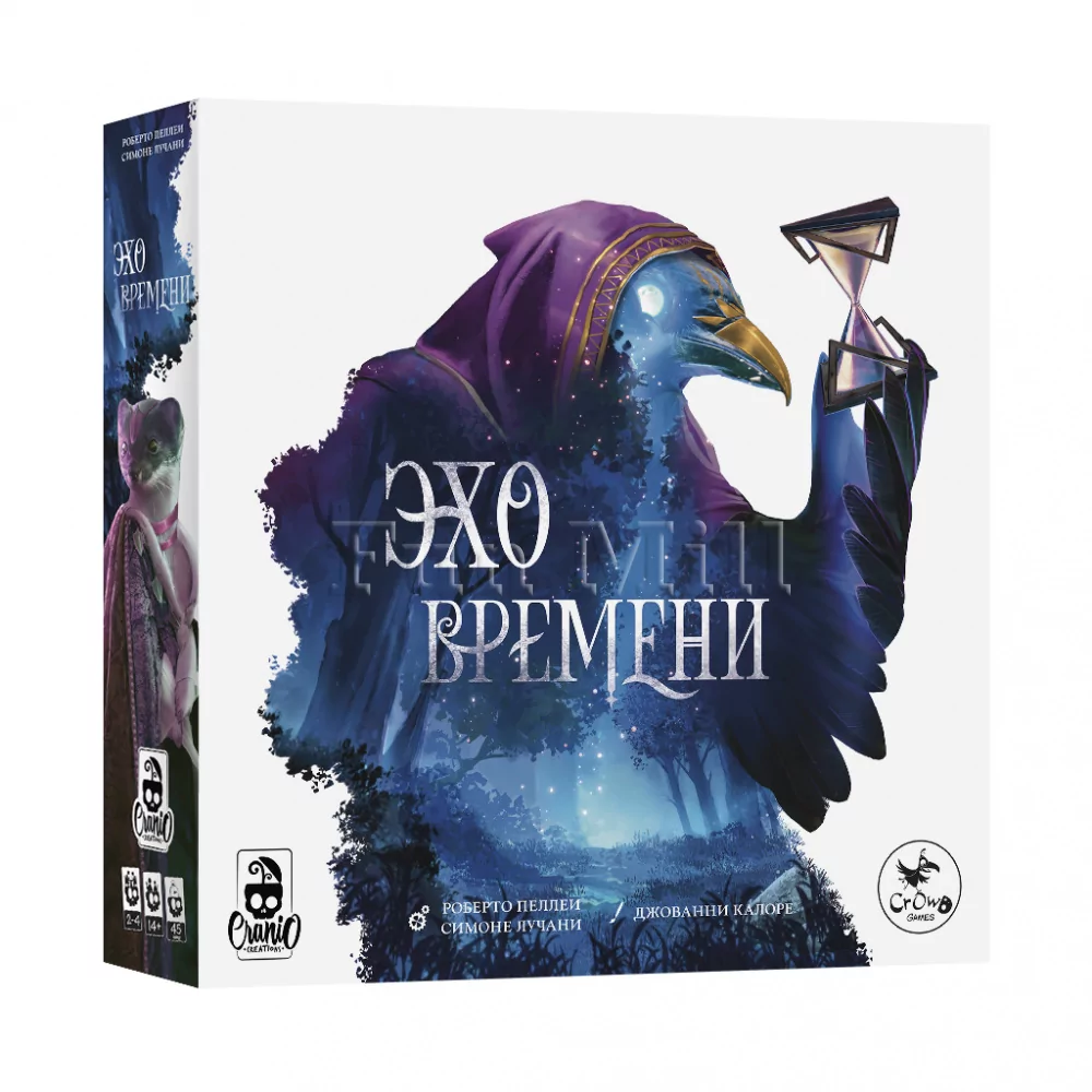 Игра рассчитана на 2–4 игроков, ориентировочное игровое время 30–60 минут, возраст 12+. Авторы – Симоне Лучани и Роберто Пеллеи, известные по сложным евро с мощной карточной синергией, а «Эхо времени» уже выделяется как одна из заметных новинок SPIEL Essen 2025. В русской версии от Crowd Games предзаказ даёт две промокарты в подарок; этот мини‑набор заявлен как эксклюзив раннего заказа и не планируется в розничной продаже