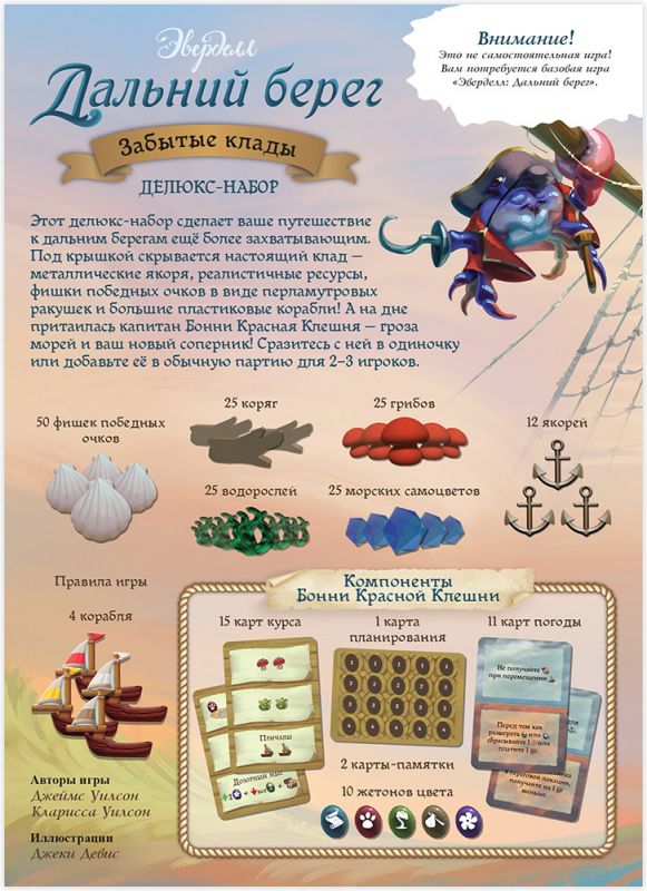 Раскройте сундук «Забытых кладов» уже сегодня! Погрузитесь в мир еще более глубокой стратегии, восхитительных компонентов и захватывающего противостояния с Бонни Красной Клешней. Ваше самое эпическое морское приключение в Эверделле ждет!