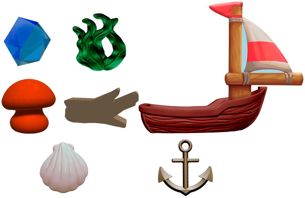 • Блестящие сокровища: Реалистичные ресурсы и перламутровые ракушки, заменяющие жетоны победных очков из базовой игры, которые приятно держать в руках и которые станут гордостью вашей коллекции.