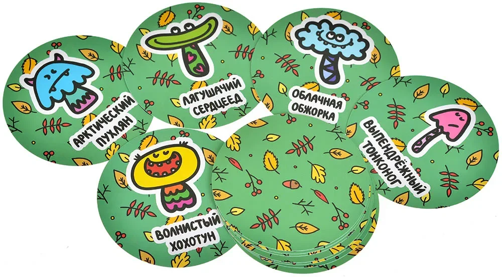 Каждый раунд начинается с «лесной загадки» — вскрывается верхняя карта задания, на которой показан гриб, за которым все охотятся в этот раз. После этого начинается самое весёлое: все игроки одновременно запускают руку в коробку, где рубашкой вверх лежат жетоны грибов, и по очереди вытягивают их, переворачивая и выкладывая перед собой. Делать это можно только одной рукой и брать жетоны по одному, что добавляет азарта и немного хаотичной суеты за столом. Как только кто‑то находит среди своих открытых жетонов искомого грибочка, он кричит «Нашёл!» — и раунд сразу же останавливается.