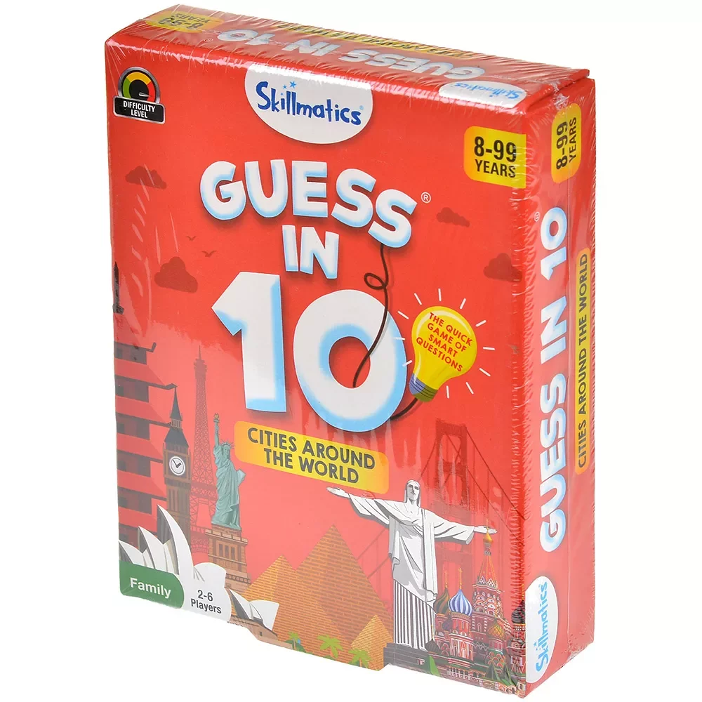 Guess in 10: Cities Around the World — увлекательная викторина‑карточка для детей от 8 лет и взрослых, которая знакомит игроков с городами по всему миру и одновременно тренирует английский язык. В этой игре участники загадывают города и пытаются отгадать их максимум за десять вопросов, на которые можно ответить только «yes» или «no». Вместо сложных правил здесь — простая механика вопросов и ответов, но каждая партия заставляет включать логику, память и сообразительность.​
