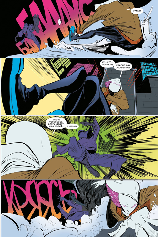 Принесёт ли День благодарения счастье Гвен-Паук и её друзьям? В основном это зависит от того, что преступный босс Мэтт Мёрдок и его ниндзя принесут на ужин! Пришла пора Гвен Стейси перестать бегать от Кингпина Земли-65 - ведь Мэтту есть чему научить начинающую Женщину-Паука! А также: "Мэри Джейн" играют из каждого переулка, а Гвен всё больше времени проводит в своём социальном круге, который только растёт! Её ждут тайная миссия с Капитаном Америка! Женщина-Халк! И ее ЛСД (лучший свиной друг), Свин-Паук! Но когда Гвен и Новая Росомаха, Лора Кинни, внезапно межпространственно поменяются телами и начнут работать вместе - станет ли это началом прекрасной дружбы?