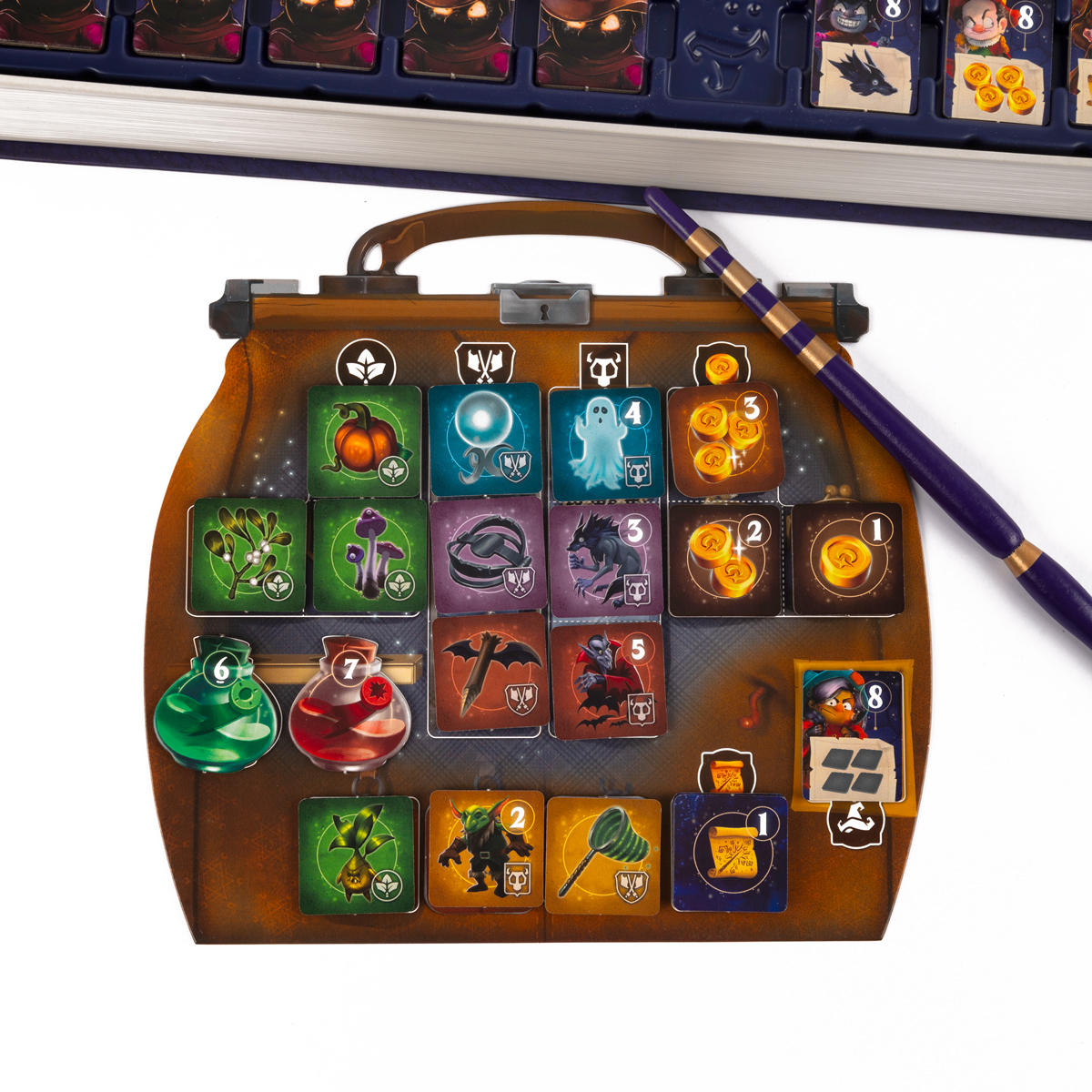Собранные жетоны отправляются в волшебный саквояж и работают как наборы, усиливающие друг друга. Зелья требуют определённых ингредиентов, артефакты приносят больше очков в комбинациях, книги магии открывают дополнительные возможности, а особые жетоны дают разовые бонусы. Монстры, попадающиеся по пути, могут мешать или, наоборот, становиться источником очков, если вы правильно подготовлены к встрече.