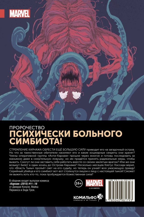 В сборник входят выпуски комикса "Карнаж" (2015) #11—16 от Джерри Конуэя, Майка Перкинса и Энди Троя.