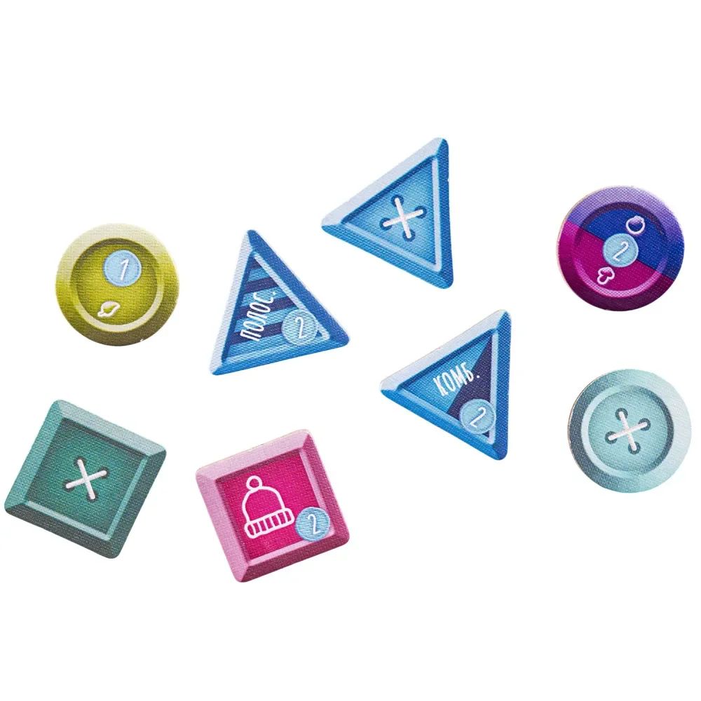 • Жетоны пуговиц – 90 шт. трёх типов: приносят очки и усиливают готовые изделия.​