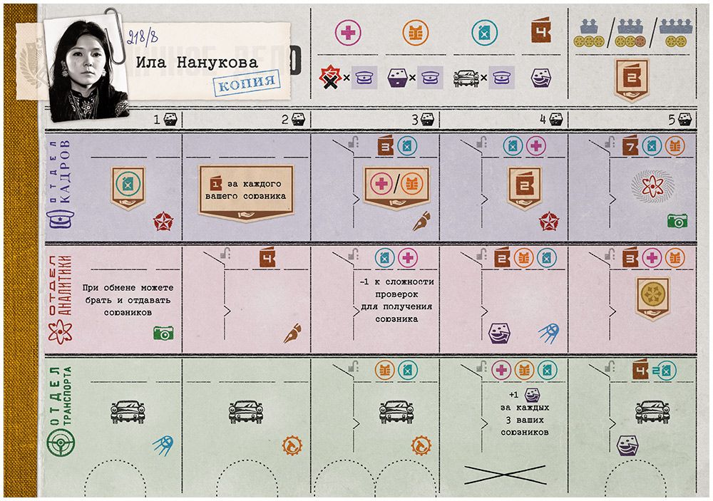 Планшеты персонажей – 6 шт., с индивидуальными способностями и треками состояний