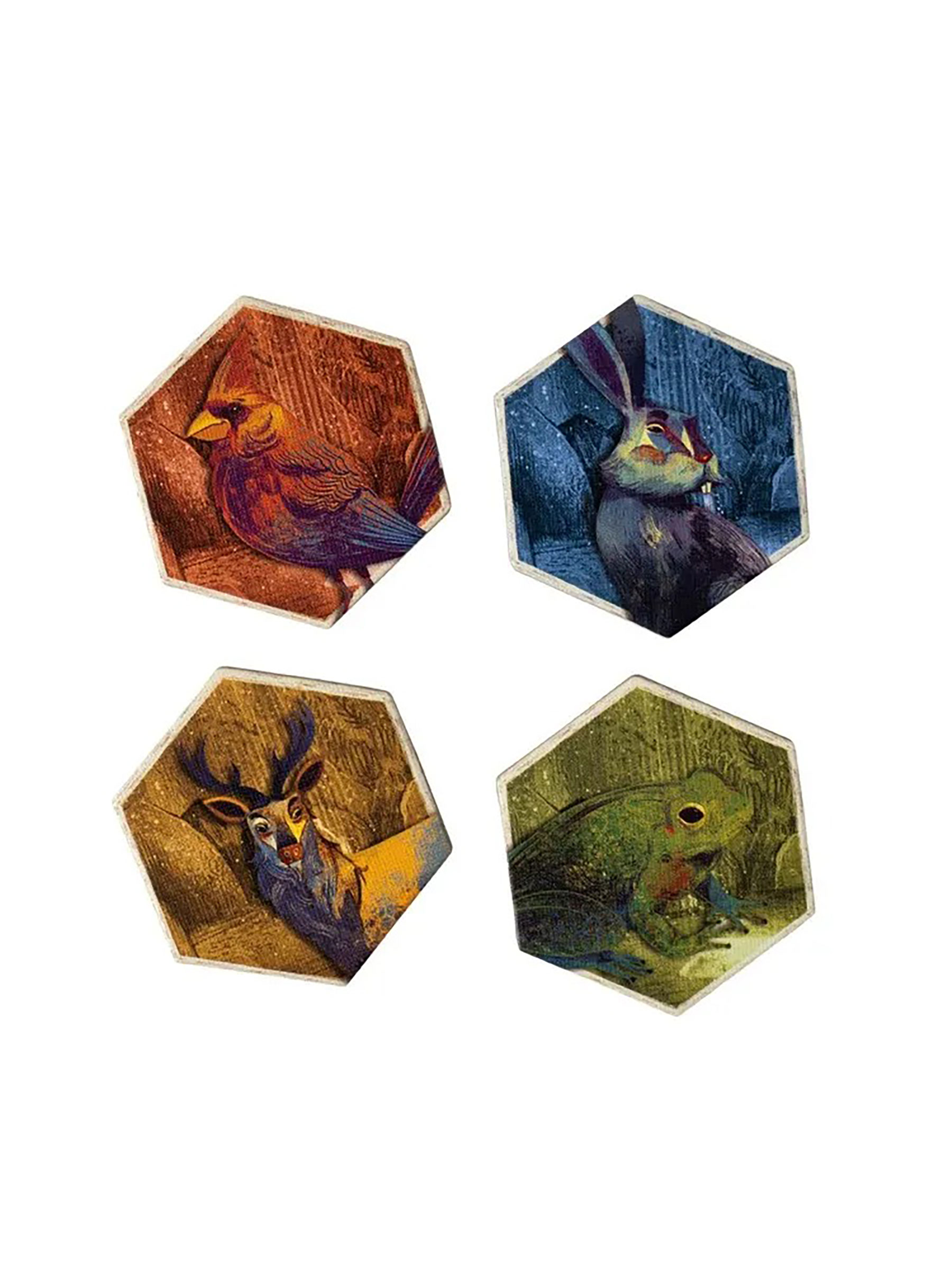 Компоненты выполнены очень качественно: плотные шестиугольные тайлы выдержат множество партий, а объёмные деревянные фигурки животных приятно смотреть и передвигать по полю. Акварельные иллюстрации создают ощущение сказочного леса — прогулка по тропинкам визуально не менее привлекательна, чем сама механика. Игра подходит для тихого семейного вечера, серьёзного соревнования за очки или расслабленного «пасьянса» в одиночку — она гибко подстраивается под настроение и компанию.
