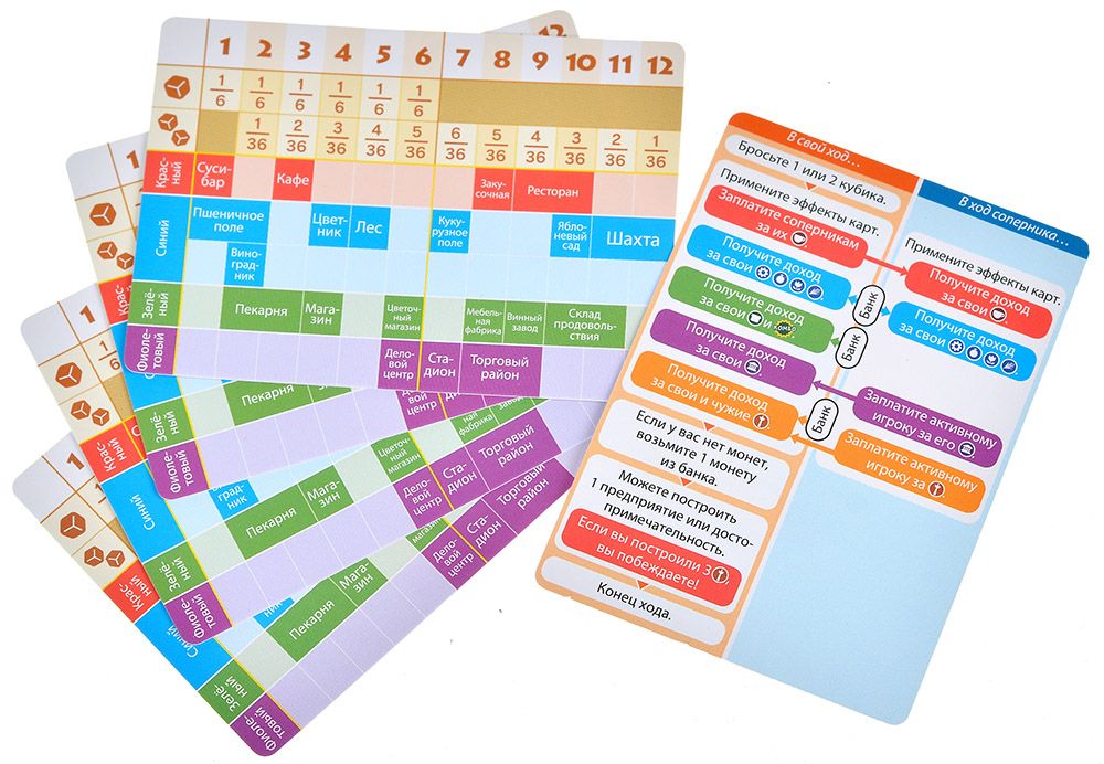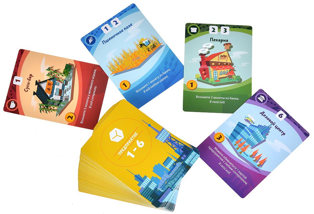 - Стартовая фаза (3 раунда): Игроки по очереди покупают одно предприятие без броска кубика