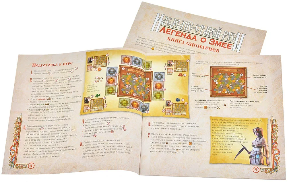«Наследие Старой Руси. Легенда о Змее» — приключенческая настольная игра в жанре roll&write, переносящая игроков в мир славянского фэнтези по мотивам вселенной «Сказки Старой Руси». Вы возьмёте на себя роли богатырей, отважных полениц и других героев, которые защищают юго‑восточные земли Славии у Сорочинских гор от нечисти и трёхголового Змея.
