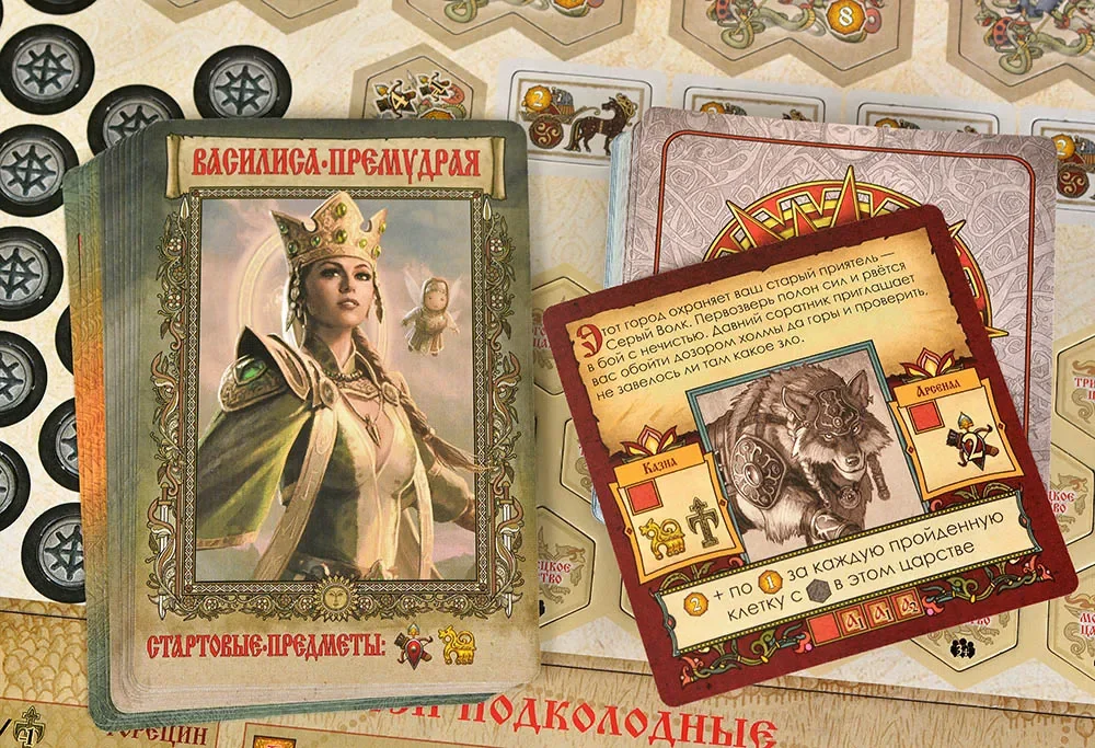 На карте встречаются разные типы зон. Обычная местность служит для перемещений, а особые клетки открывают доступ к ключевым действиям: в городах можно получать задания, снаряжение и полезные предметы, на заставах — брать поручения, влияющие на итоговый подсчёт славы, а в урочищах вас ждут самые опасные противники и щедрые награды за победу. Кроме того, на пути встречаются клетки с амулетами и снаряжением, позволяющими улучшить возможности героя и подготовиться к грядущим сражениям.