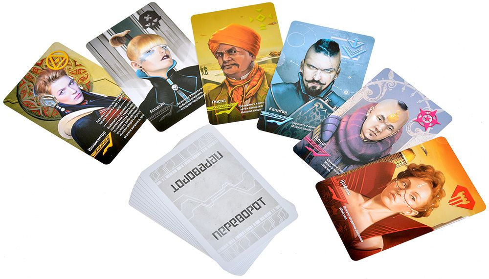 Благодаря новым картам покровителей и фракционным правилам игра раскрывается в больших компаниях. Комплект позволяет увеличить максимальное число участников до 10 человек, что создаёт совершенно иной уровень напряжения и интриг за столом. В крупной партии смены фракций, угрозы, временные союзы и предательства следуют одно за другим, но при этом базовые принципы «Переворота» сохраняются: блеф, проверка заявленных ролей и своевременное устранение опасных соперников.​