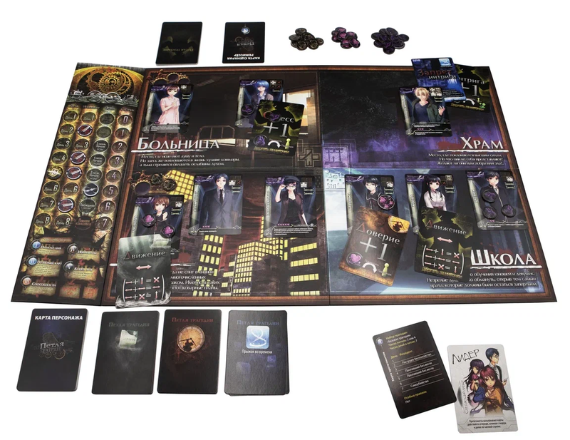 - Глубокое взаимодействие с персонажами через жетоны доверия, стресса и интриг