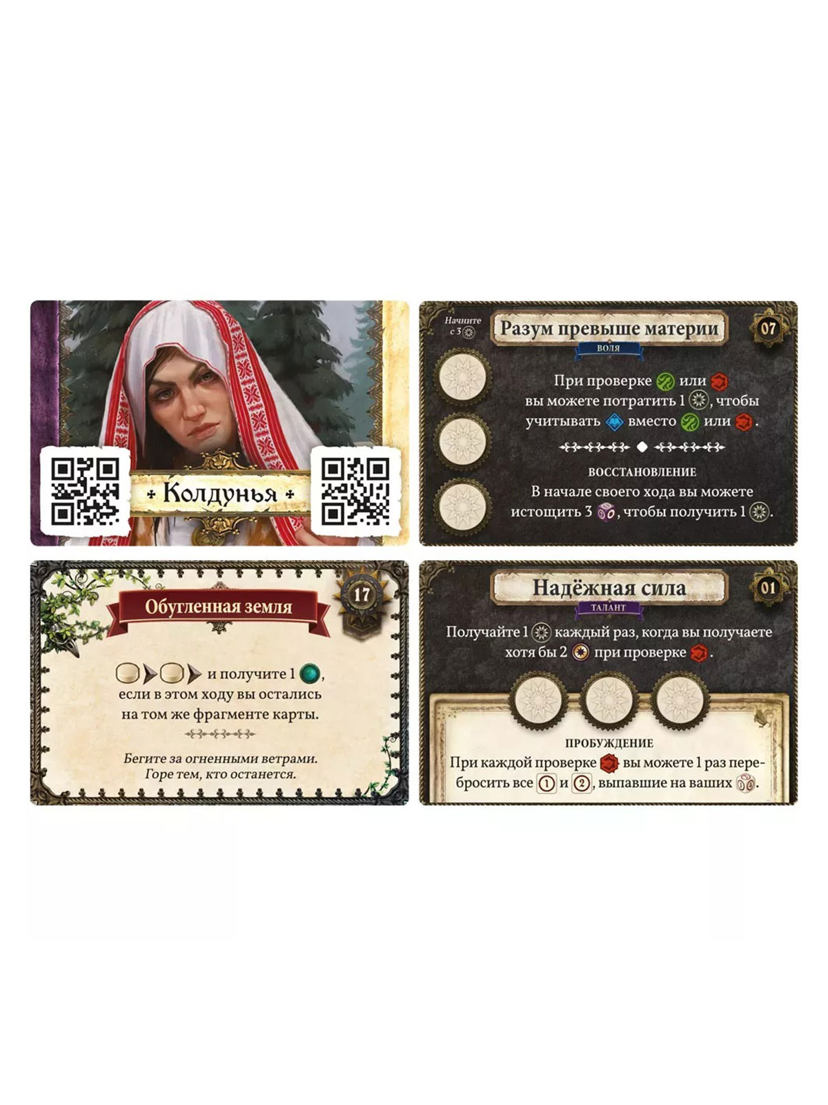 Карты способностей (30 шт.) – личные навыки персонажей, усиливающие их и добавляющие асимметрию.