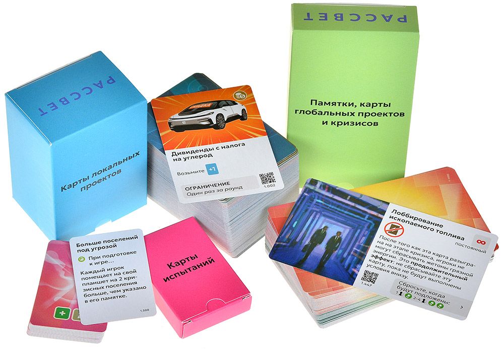 «Рассвет» выделяется экологически чистыми материалами: переработанная бумага, нетоксичные краски и продуманный органайзер для хранения. Богатые иллюстрации сотен карт погружают в детализированный мир современных климатических технологий и последствий потепления. Дизайн подчёркивает серьёзность темы, но сохраняет доступность: правила осваиваются за 10–15 минут, а соло‑режим позволяет одному игроку проверить силы против автоматизированных кризисов.