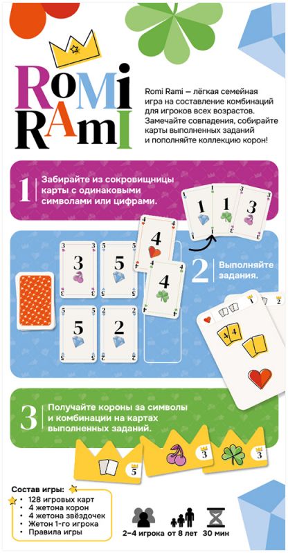 Romi Rami – современная семейная игра по мотивам классического рамми, в которой вы собираете карточные комбинации и обмениваете их на прибыльные задания‑контракты. Простые правила позволяют включить в игру всю семью, а постоянно меняющийся рынок заданий и трофеев требует каждый раз подстраивать стратегию.