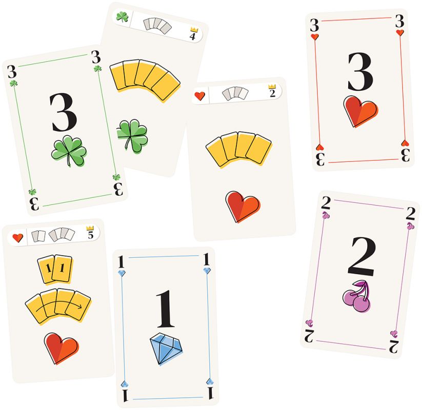 Особый интерес вызывают контракты с коронами. Такие задания помечены специальным символом; выполнив их, вы берёте один из четырёх двусторонних жетонов корон, меняющих условия подсчёта очков. Например, корона может награждать за большинство контрактов определённой масти или за самый длинный ряд, поэтому игроки следят не только за цифрами, но и за тем, к каким трофеям приведут их комбинации.