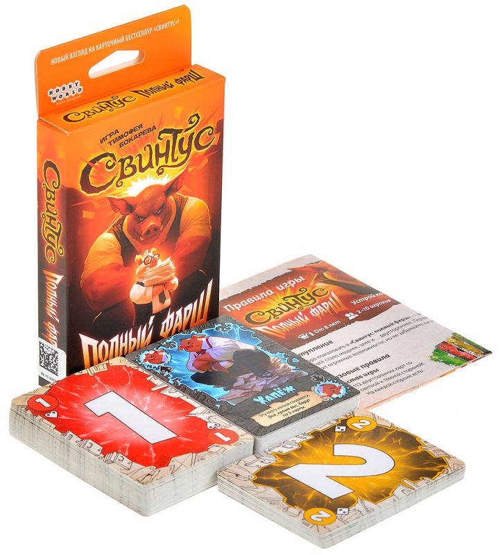 «Свинтус: Полный фарш» – обновлённая версия классического «Свинтуса», в которой каждая карта получила сразу две жизни: светлую и тёмную сторону. Игра сохраняет знакомую цель – первым избавиться от всех карт на руке, но добавляет новый тактический уровень благодаря возможности в любой момент «перевернуть» расклад буквально одним движением.