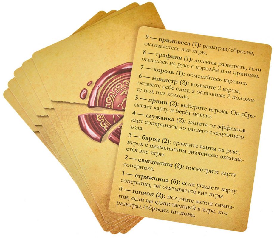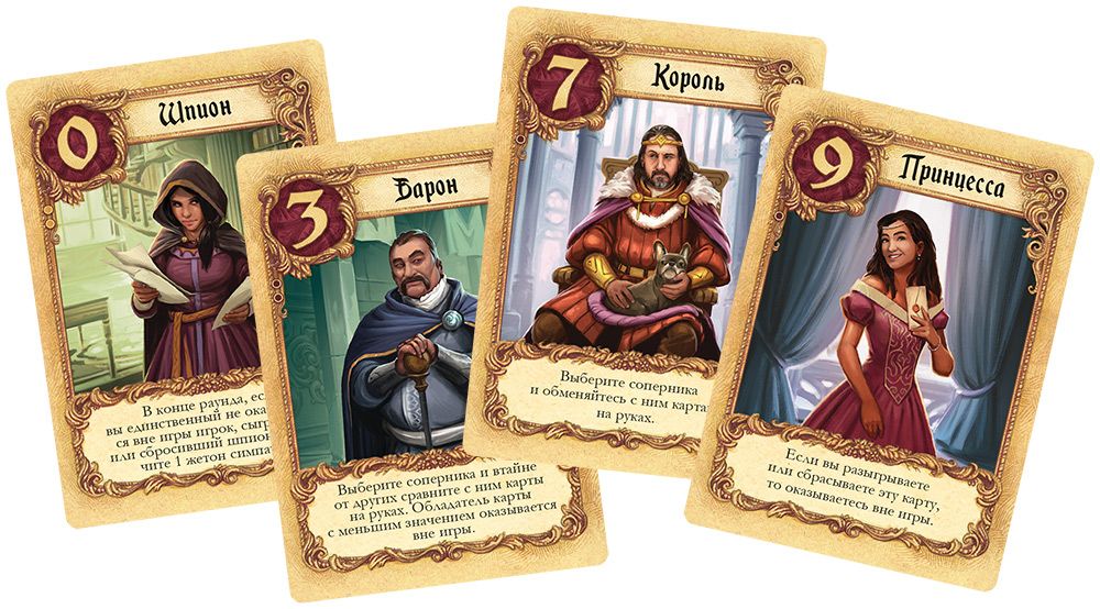 Каждый ход — это выбор между риском и осторожностью. Принц заставит соперника сбросить карту, Служанка защитит от козней, а Барон вызовет на тайную дуэль.