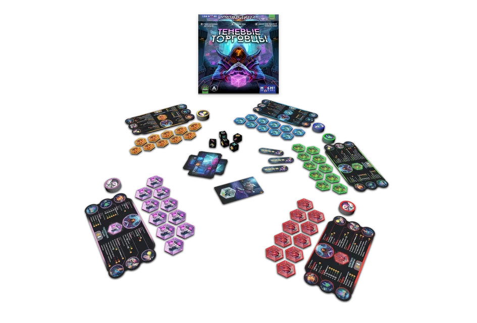 В центре стола находятся товары шести цветов и кубики приспешников, отражающие влияние различных сил на чёрном рынке. Каждый игрок получает планшет своего торговца, стартовый набор ресурсов и тайный контракт клиента, определяющий, какие цвета товаров принесут наибольший доход к финалу. В течение партии вы будете забирать товары с рынка, проворачивать сделки и перекрывать оппонентам выгодные комбинации, пытаясь не выдать истинные приоритеты своего заказа.