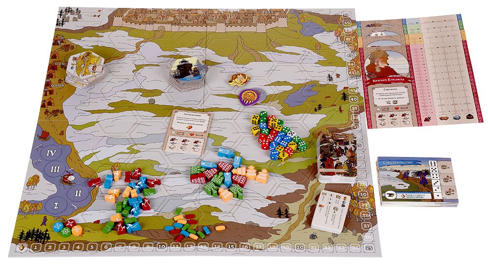 «Тундра» – конкурентная стратегическая настольная игра, в которой игроки становятся наместниками северного царства и борются за право управлять суровым краем, пока царь-батюшка спит. Перед вами неагрессивная, но глубокая евроигра: здесь важны планирование, эффективное использование рабочих-кубиков и умение подстроить движок под выбранную стратегию. Каждая партия длится около 40–60 минут и рассчитана на 2–4 игроков от 12 лет, что делает игру подходящей как для продвинутых семей, так и для любителей современных стратегий.​