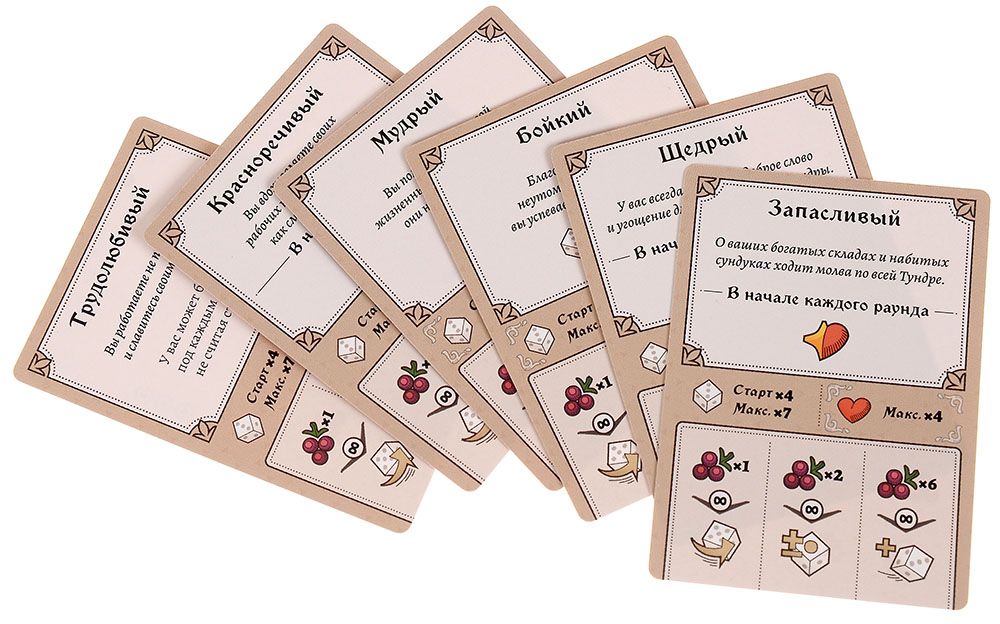 Отдельного внимания заслуживает визуальное оформление игры, вдохновлённое картинами выдающегося русского художника Ивана Билибина: холодные северные пейзажи, стилизованные персонажи и тщательно прорисованные детали создают атмосферу сказочного, но сурового края. В сочетании с продуманным стратегическим ядром это делает «Тундру» привлекательным выбором для тех, кто ищет современную евроигру с оригинальной подачей и акцентом на планирование вместо прямой конфронтации.