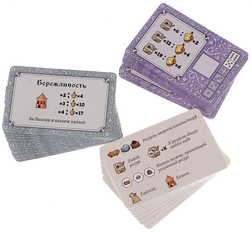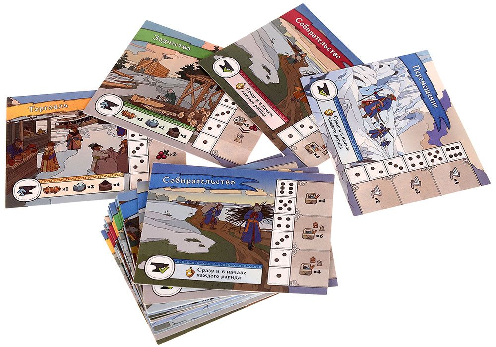 • 4 планшета приказов на игрока (зодчество, собирательство, перемещение, торговля)