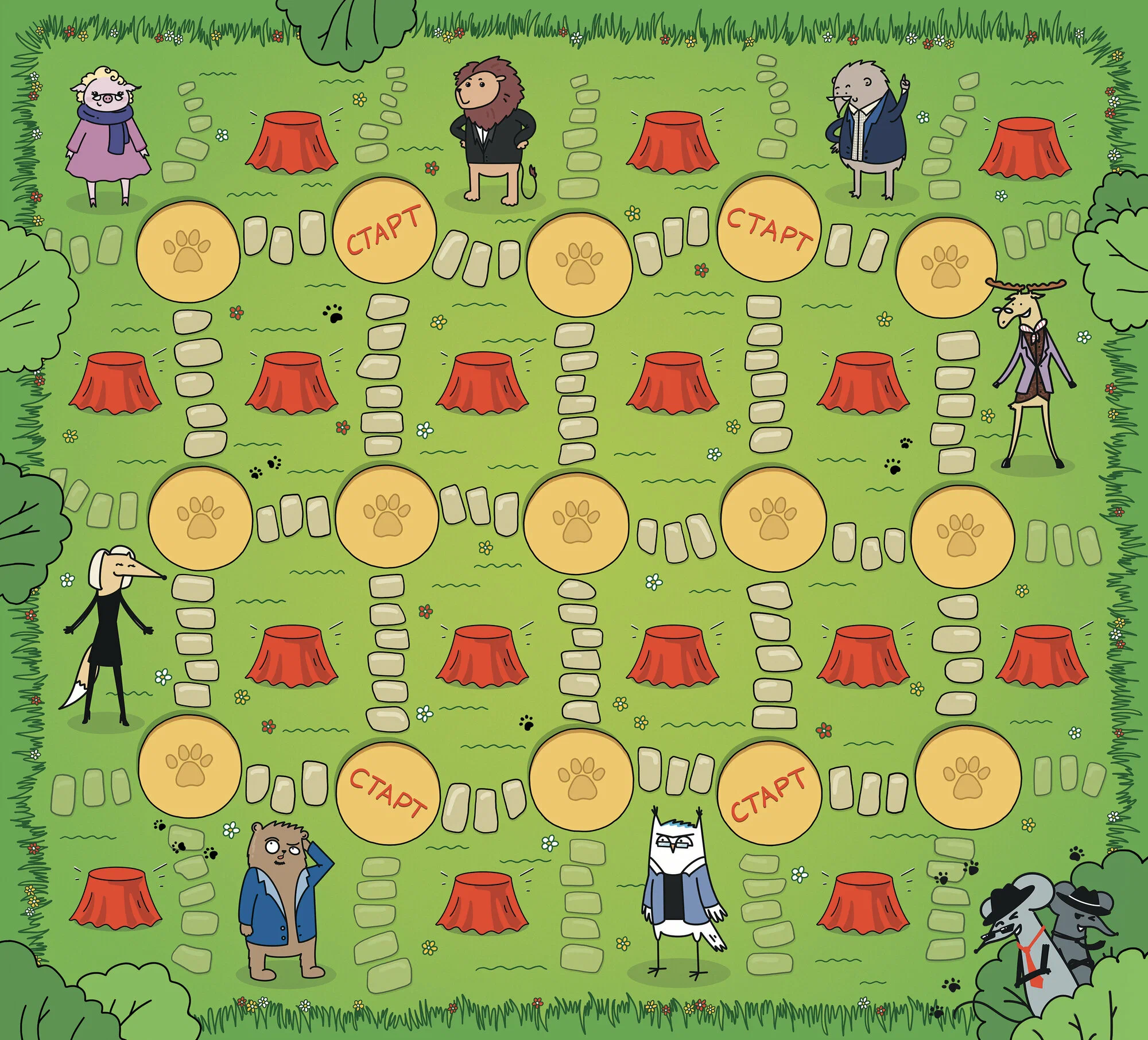 Фишки персонажей с подставками и компактные карты 63 × 63 мм делают игру удобной для маленьких рук. Коробка 205 × 205 × 60 мм легко помещается на полке с детскими настолками или берётся в дорогу. Производитель Zvezda гарантирует качество компонентов, а кооперативный формат исключает конфликты — все вместе против мышей.