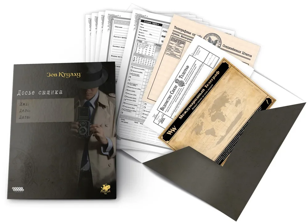 Все элементы набора удобно складываются в тематическую папку, которая выполняет роль настоящего досье. В ней хранятся листы персонажей, распечатанные раздаточные материалы, заметки и телеграммы, что позволяет не терять важные подробности между игровыми сессиями. Папка визуально поддерживает стиль игры — старые бумаги, полузатёртые записи и загадочные документы становятся частью общей истории о столкновении обычных людей с безымянными ужасами вселенной. Такой подход особенно ценят группы, играющие в долгие кампании, где накопленное досье превращается в хронику расследований.